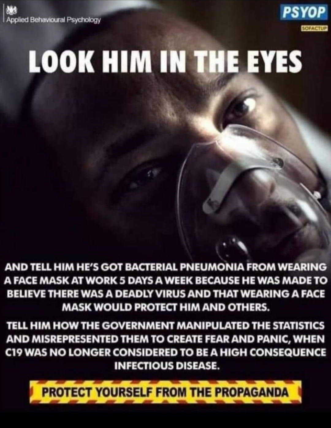 Not Only Does This Filthy Rag Not Protect You Every Time You Wear It You Commit Self Harm. When You Wear A Mask You Breathe In Your Own Carbon Dioxide! And This Causes Respiratory Disease And Irreparable Brain Damage, Destroying The Myelin Sheath Of The Brain , And If Worn For Extended Periods, Lung Cancer! Wearing A Mask Offers No Protection From ANY Virus And has No Basis In Science They Are Nothing To Do With Health And Everything To Do With Control! Humanity Must Stop Blindly Obeying Authority! Stop Acquiescing To Stupid!