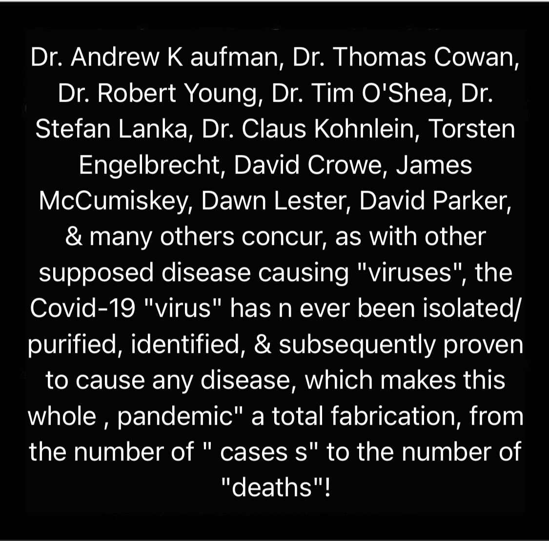 Also See: The Most Hideous And Inhuman Hoax And Genocide On The Face Of The Earth – The Culling Of Humanity – And All Of Our Governments Are Complicit – Despite What The Mouthpiece Of The Cabal, The Mainstream Media And Governments State – There Is No Scientific Evidence Anywhere That A Virus Causes Disease! ‘Viruses’ And ‘Diseases’ Do Not Exist!! SHOW ME THE VIRUS – THE GERM THEORY ON TRAIL WITH DOCTOR ANDREW KAUFMAN AND THOMAS COWANhttps://wp.me/p19seq-azx