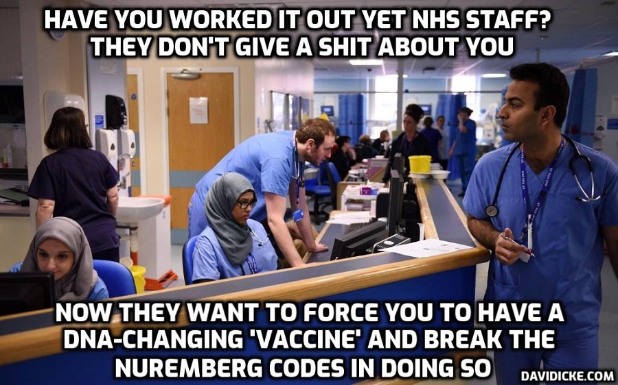 A Senior Nurse Supervisor (who must remain anonymous for now) In The National Health Service Has Called Out The Covid Vaxx As Genocide! Also Stating That It Is NOT A Vaccine!! “Claims About This Pathogen Being Safe And Effective Is Poetic Licence”!! The Senior Nurse Supervisor (Who Has Been Warned Not To Speak Out) Also States That It Is ‘A Horrid Act Of Human Annihilation’! The Senior Nurse Stated That, When These Evil Genocidal Criminals Are Brought To Justice I Will Consider It An Honour To Testify At Their Nuremberg Trial!