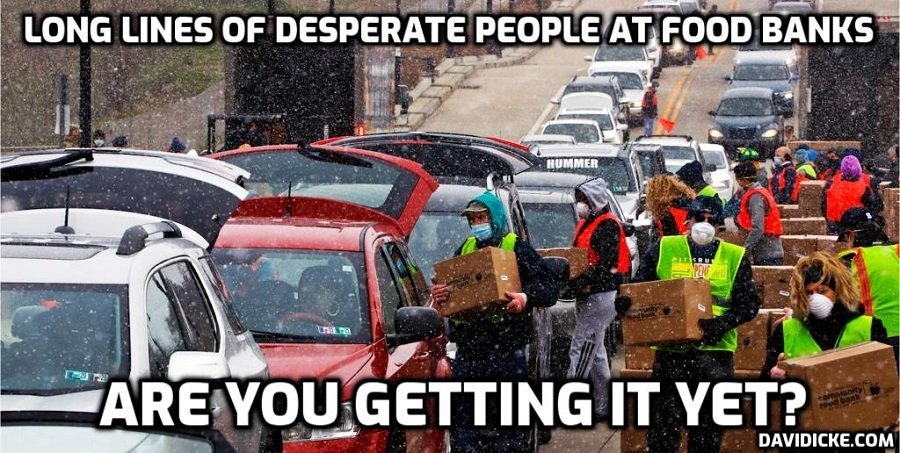 Although this document totally exposes the hoax pandemic that is designed to destroy the global economy and local business by putting countries into lockdown, and removing peoples ability to work for an income, making them totally dependant on Governments for support, funds to buy food etc, and forcing many to queue on long lines, some of them many kilometres long. When the Government payments stopped for many the Globalist Cabal Captured Governments End Goal was, is, To Usher in an Orwellian Globalist Cabal Tyranny. Then They would bring in a system of universal global income that would barely provide enough funds to survive.