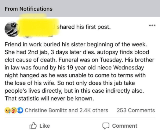 The Above Report Of Yet Another Infant Death Was Sent To Me Last Night! How Many More Infants, Children And Other People Must Die Before You Wake Up. The People That Keep saying “Oh, They Wouldn’t Poison Us On Purpose Your Nuts. Your Governments Have Been Coopted By The Criminal Corporate Globalist Cabal. They ARE In The Process Of Culling The Global Population, And They Are Using A Bioweapon That Is In The Covid (Pathogen) To Achieve This Goal.