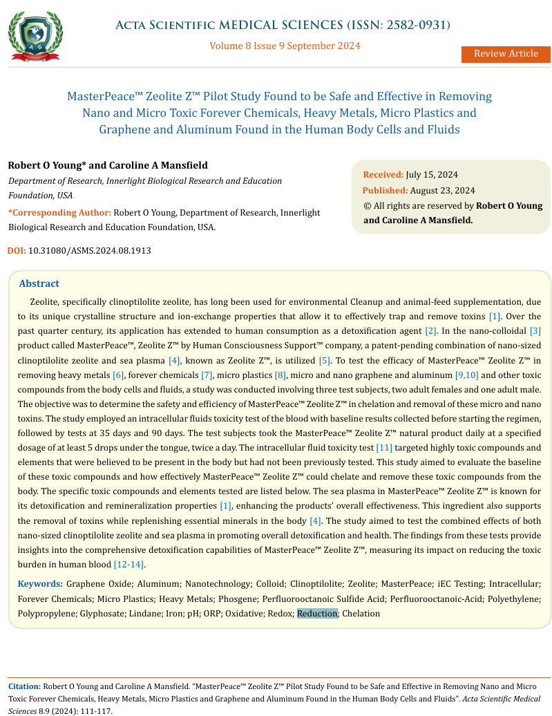 Also See: 🚨MasterPeace™ Zeolite Z™ Peer-Reviewed Published Research Study Found to be Safe and Effective in Removing Chemical & Radioactive Poisons!🚨 – Dr Robert Young https://wp.me/p19seq-jK8